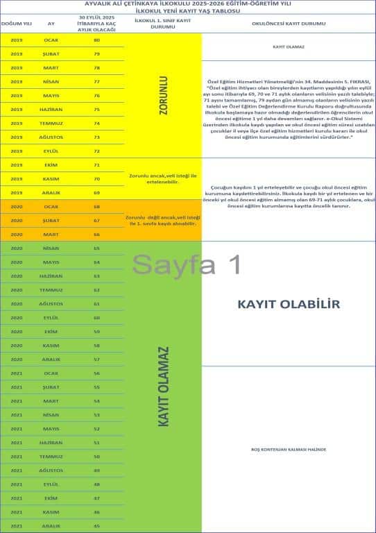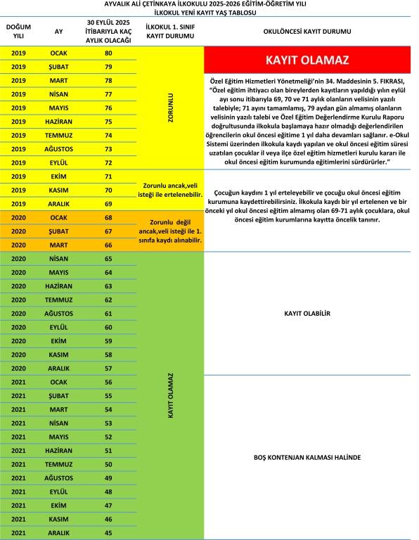 2025-2026 Eğitim-Öğretim yılı 1. sınıf yeni kayıt...